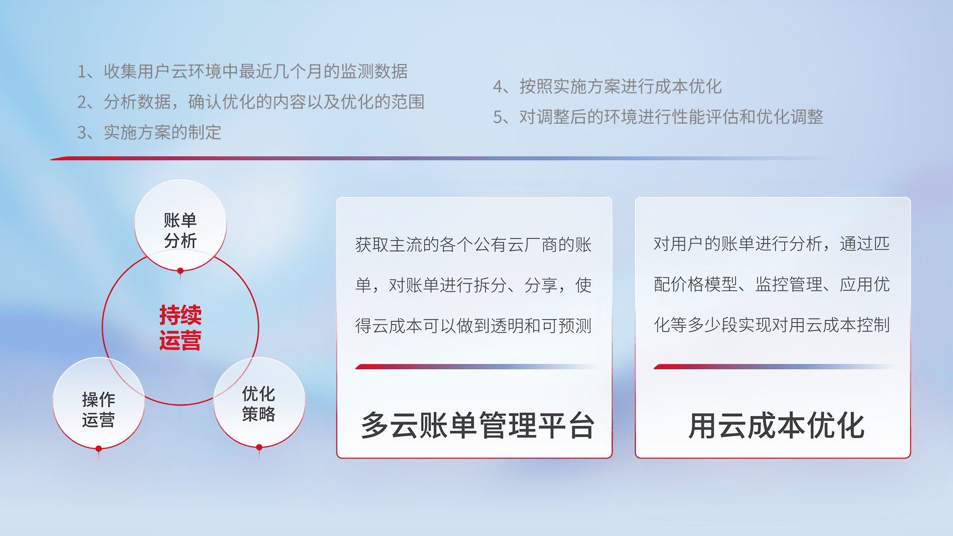 运用智能化工具分析云资源,,,,提供日常费用可视化工具,,,自动账单拆分,,,,成本优化云上费用,,,,降本增效。。